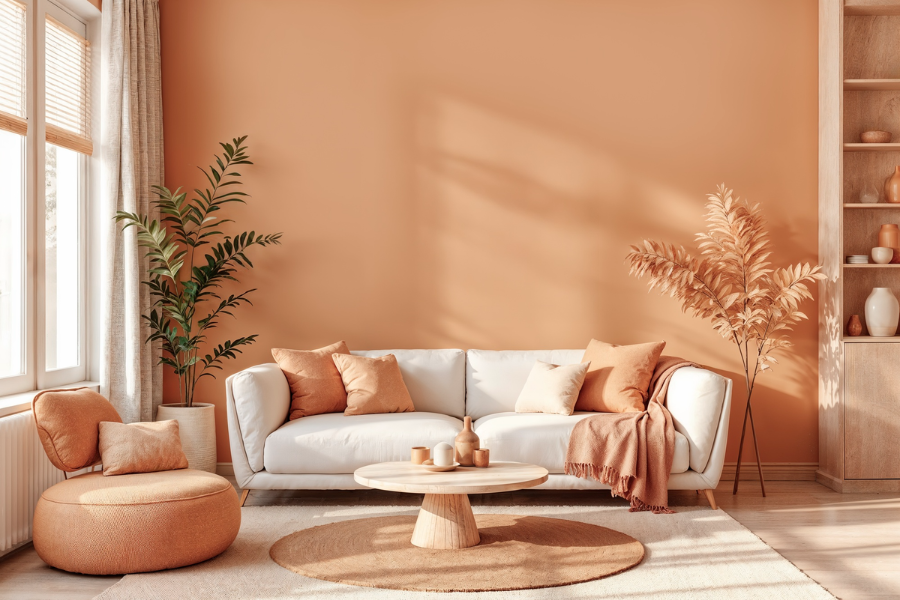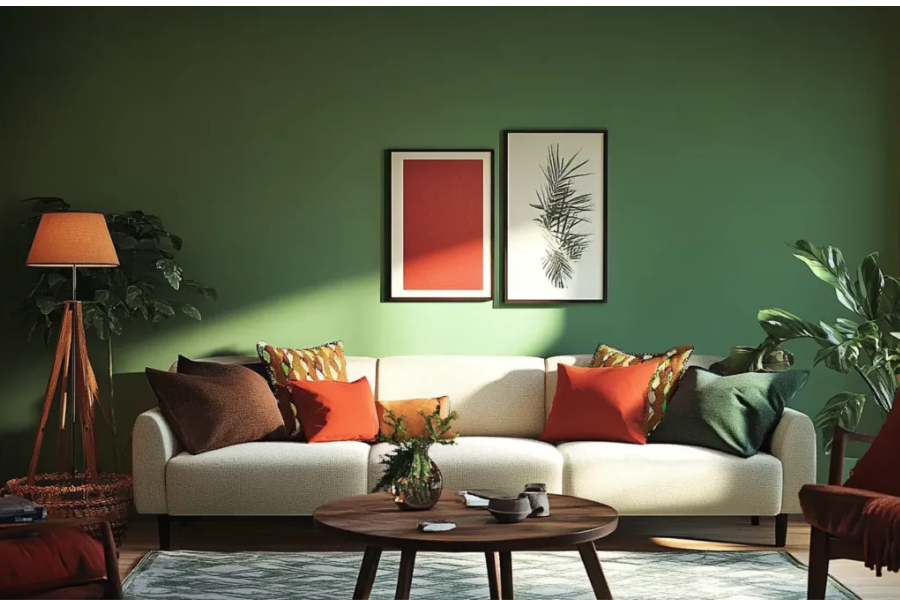For those who love a grounded, organic feel, this living room indian hall colour combination is a winner. Terracotta reminds us of our roots, the clay pots and sun-baked bricks of rural India. When paired with a warm beige, it creates a sun-kissed glow. This is arguably the best color for living room walls india for homes that feature a lot of teak or rosewood furniture.