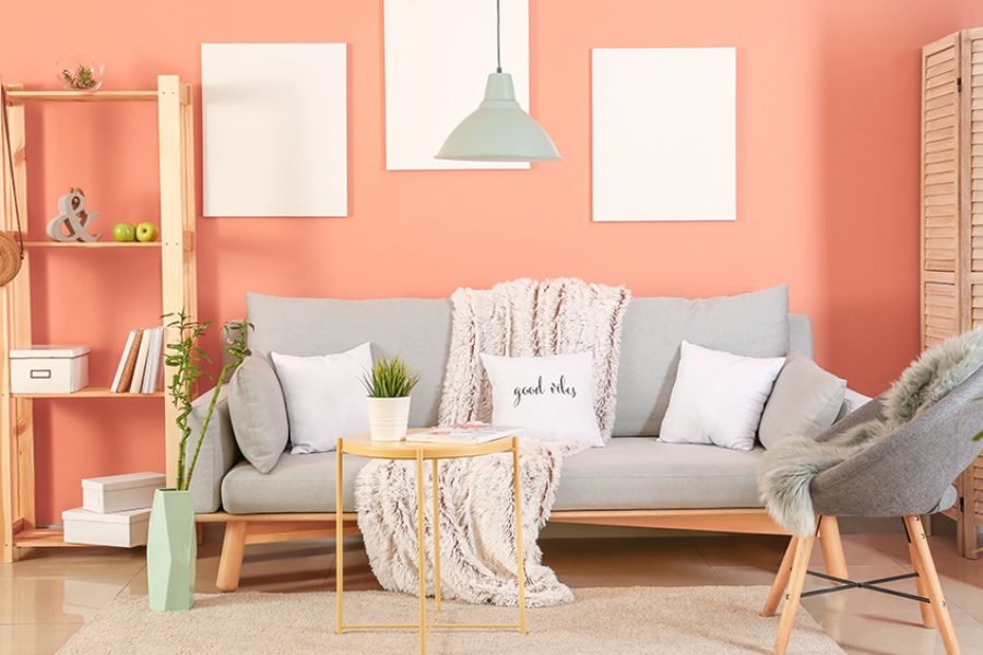 Coral is the softer, more playful cousin of red. It brings warmth without the aggression of a bright crimson. As a hall home colour combination, coral and sand create a beachy, relaxed atmosphere that is perfect for coastal cities like Mumbai or Chennai.