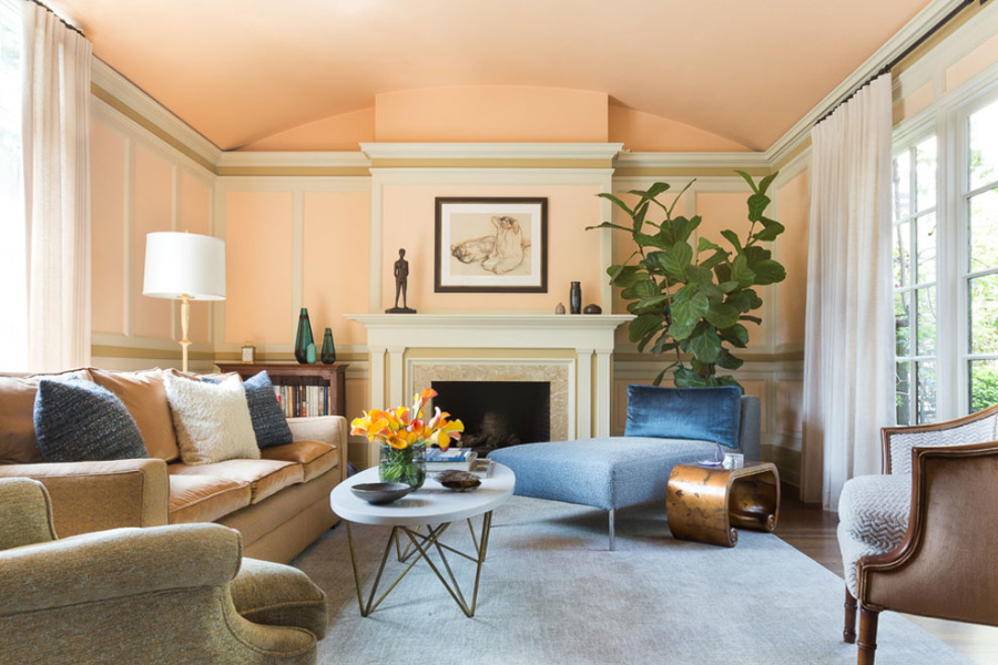 A classic pairing of off-white walls with a soft pastel accent like mint or peach creates an airy, spacious feel.